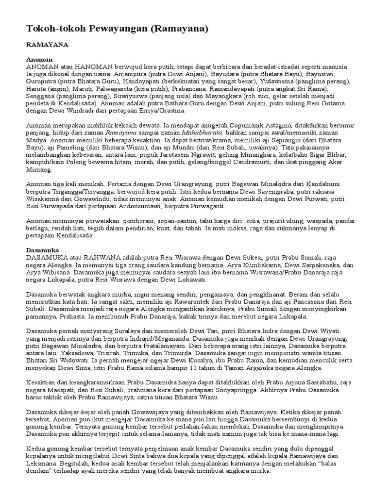Doc Cerita Ramayana Sintha Kandhusta Prabu Dasamuka Dini Kamilia Academia Edu