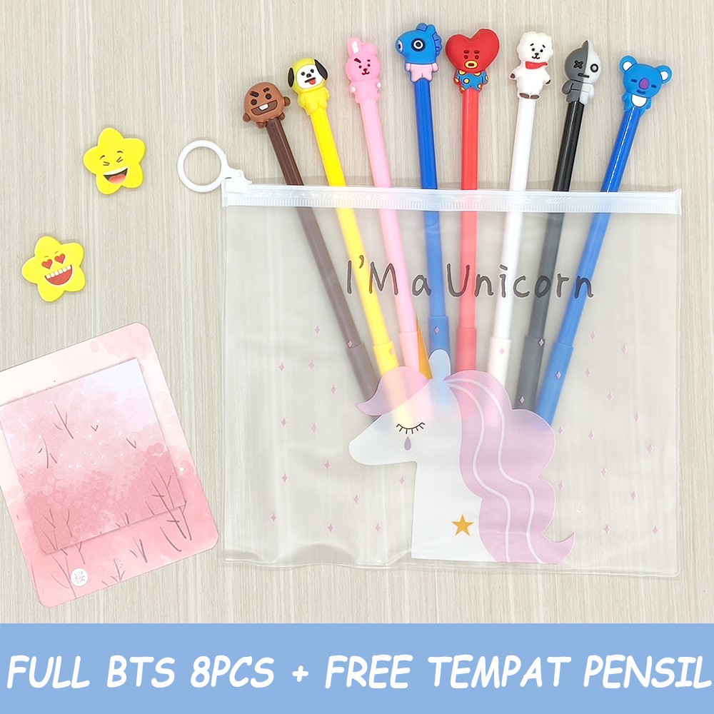 1 Set 8 Karakter Lengkap Pulpen Gel Motif Bts Bt21 Free Tempat Pensil Aa82 Shopee Indonesia