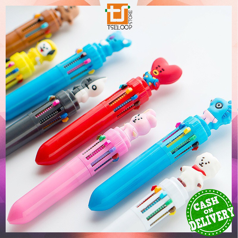 Ofm 0021 Bt21 Bts Pulpen Kartun 10 Warna Bolpoin Karakter Funny Shopee Indonesia